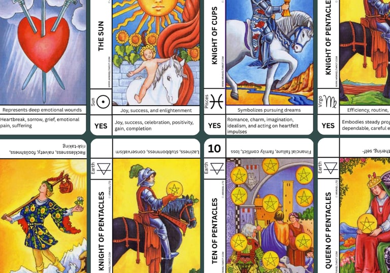 BEGINNER TAROT DECK KEYWORDS, REVERSED, ZODIAC, NUMEROLOGY, ASTROLOGY, YES/NO